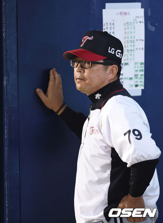 11일 오후 잠실야구장에서 열린 '2014 한국야쿠르트 세븐 프로야구' 두산 베어스와 LG 트읜스의 경기,8회초 1사 만루 LG 공격에서 양상문 감독이 경기를 바라보고 있다.