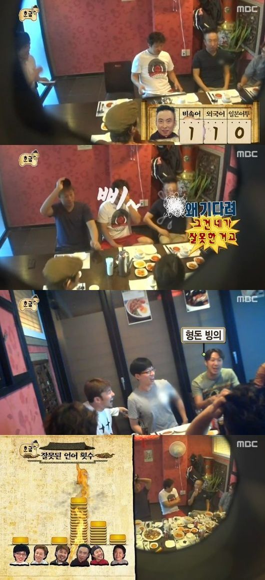 '무한도전'은 한글날 특집으로 꾸며진 11일 방송에서 멤버들의 실제 말투에 비속어나 외국어가 얼마나 많은지 보기 위해 몰래 카메라를 진행했는데, 일부 '예민한' 시청자들의 눈을 끌어당긴 건 멤버들 간의 스스럼 없는 말투였다.