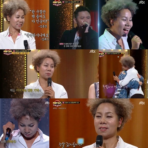 인순이는 ‘아버지’라는 노래를 부르면서도 진한 감정을 가지고 감성을 전달했고 때문에 그 감동은 컸다. 통에서 나와 눈물을 글썽거리며 부르는 인순이의 모습에 패널들도, 판정단도, 시청자도 울었다. 듣고 있으면 저절로 눈물이 나오는 그런 무대였다. 이런 상황에서 대결은 의미가 없었다. 서로 감동을 주고받는 무대가 의미 있었다.