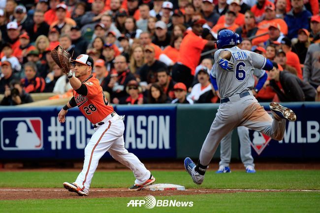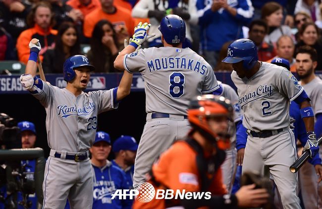 3회에도 득점을 주고받았다. 캔자스시티가 2사 후 케인과 호스머의 연속 안타에 이어 빌리 버틀러가 우측 1타점 2루타로 추가점을 내자 볼티모어도 알레한드로 데아자의 2루타가 나온 후 아담 존스가 좌월 투런 홈런을 작렬시키며 3-3 동점을 이뤘다.