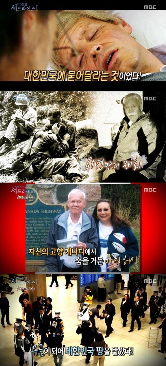 12일 오후 10시 45분 방송된 MBC '신비한TV 서프라이즈'에는 한국 전쟁에 참전한 형 조셉 허시와 동생 아치 허시가 서로를 그리워하다 60년 만에 한국 땅에 묻히게 된 사연이 소개됐다.
