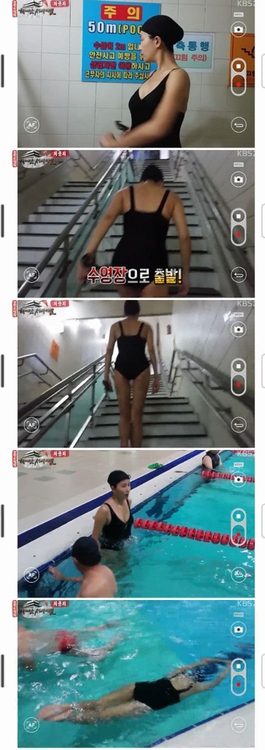 이날 황인영의 셀프 카메라가 공개됐다. 결승전을 위한 체력단련을 하러 수영장을 찾은 황인영은 군살 없는 몸매를 드러내며 자유자재 수영 실력을 뽐내 감탄을 자아냈다.