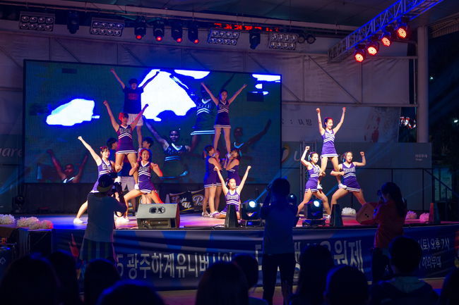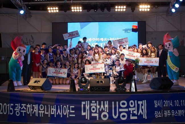 2015광주하계유니버시아드대회 조직위원회(공동위원장 김황식 윤장현)가 지난 11일 밤 광주 광천동 유스퀘어 야외무대에서 ‘대학생 U응원제’를 개최했다.
