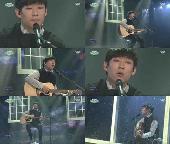 버나드 박은 12일 오후 방송된 SBS '인기가요'에 출연해 데뷔곡 '비포 더 레인(Before the Rain)' 무대를 꾸몄다.