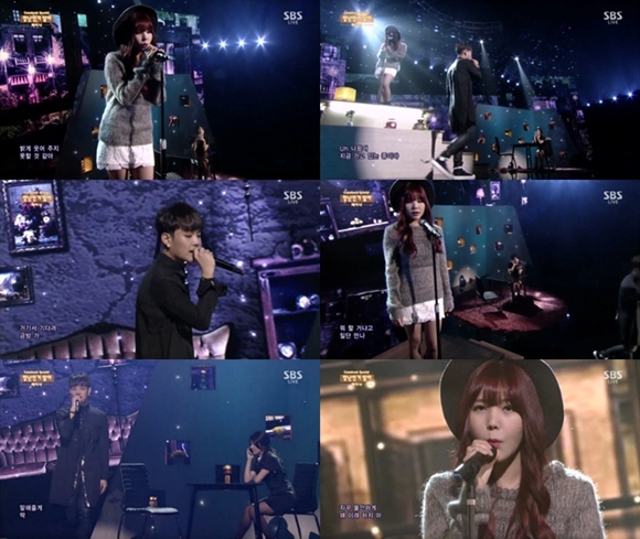 이날 레이나는 래퍼 칸토와 함께 무대를 꾸몄다. 지난 여름 '한여름밤의 꿀'로 달콤한 목소리를 자랑했던 레이나는 이별 앞에 처절한 여인을 노래했다. 가을 감성을 자극하는 러브 스토리로 또 다른 변신을 보여줬다.