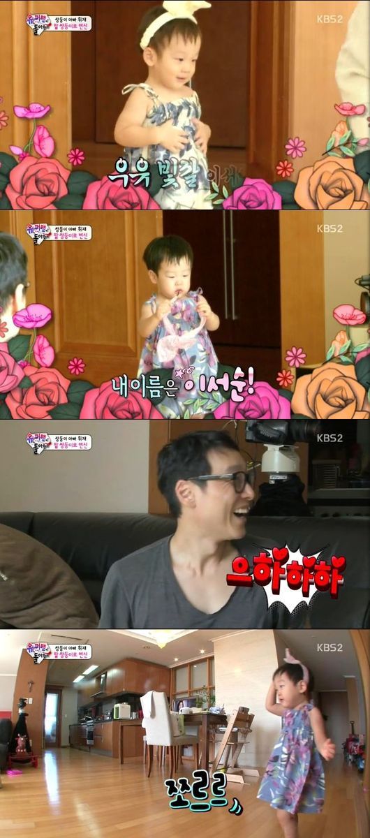 12일 오후 방송된 KBS 2TV 예능 프로그램 '해피선데이-슈퍼맨이 돌아왔다'(이하 '슈퍼맨이 돌아왔다')에서 서언과 서준이는 엄마의 소원에 따라 예쁜 여아용 원피스를 입고 아빠 앞에 등장했다.