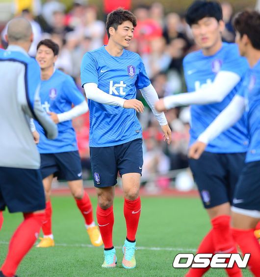 12일 오후 경기도 파주시 NFC훈련장에서 열린 축구대표팀의 공식훈련, 기성용이 몸을 풀고 있다.