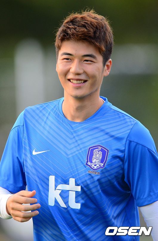 12일 오후 경기도 파주시 NFC훈련장에서 열린 축구대표팀의 공식훈련,기성용이 훈련을 나서며 미소 짓고 있다.