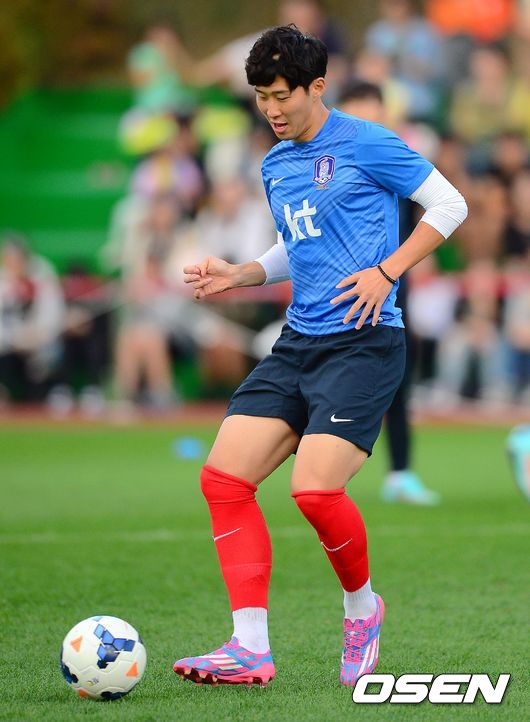 12일 오후 경기도 파주시 NFC훈련장에서 열린 축구대표팀의 공식훈련, 손흥민이 패스 연습을 하고 있다.