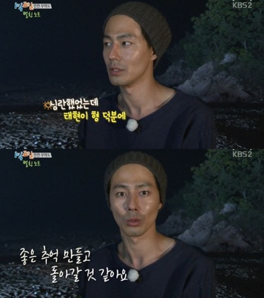 잠자리 복불복까지 첫 날 모든 게임을 마친 조인성은 “드라마 끝난지 얼마 안돼서 심란했었는데 태현이 형 덕분에 좋은 추억을 만들고 돌아갈 것 같다. 아침도 기대된다”고 말했다.