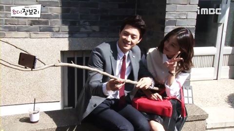 사진 속에는 김지훈과 오연서가 나뭇가지에 핸드폰을 끼운 채 셀카를 찍고 있는 모습이 담겼다.