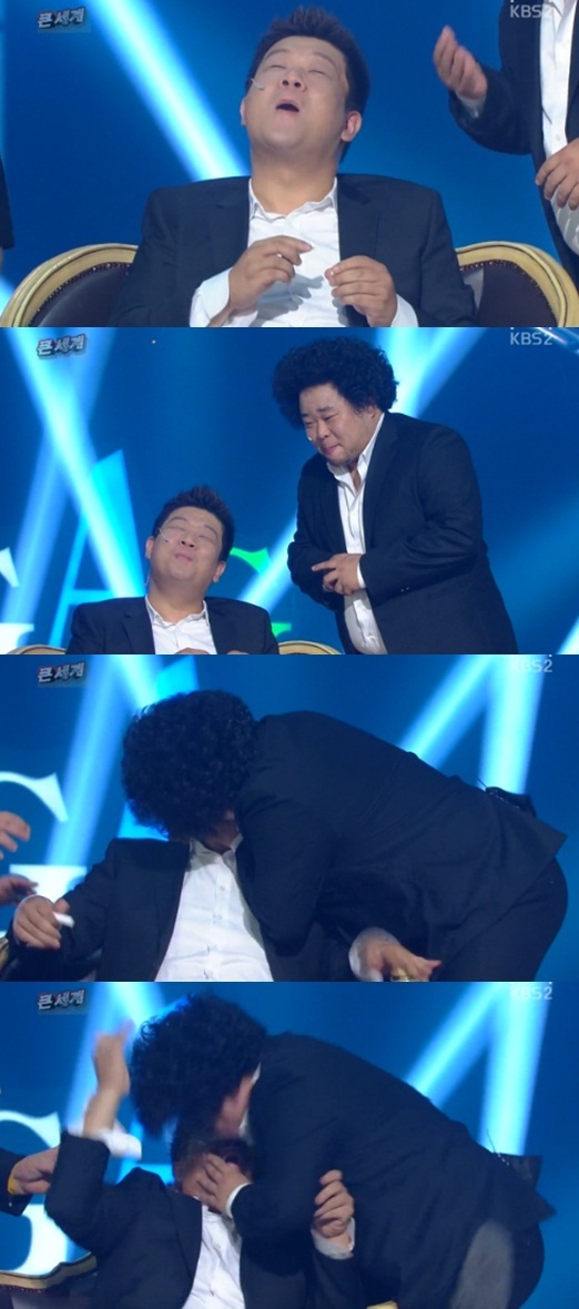 12일 방송된 KBS 2TV ‘개그콘서트’의 코너 ‘큰 세계’에는 유민상 송영길 김수영 김준현 김태원 등이 등장했다.