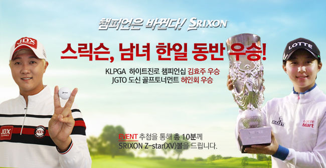 던롭스포츠코리아(대표 홍순성, www.dunlopkorea.co.kr, 이하 던롭)는 김효주와 허인회의 한일 동반 우승 기념 이벤트를 13일부터 19일까지 당사 페이스북 페이지(www.facebook.com/DunlopSportsKorea)에서 진행한다.