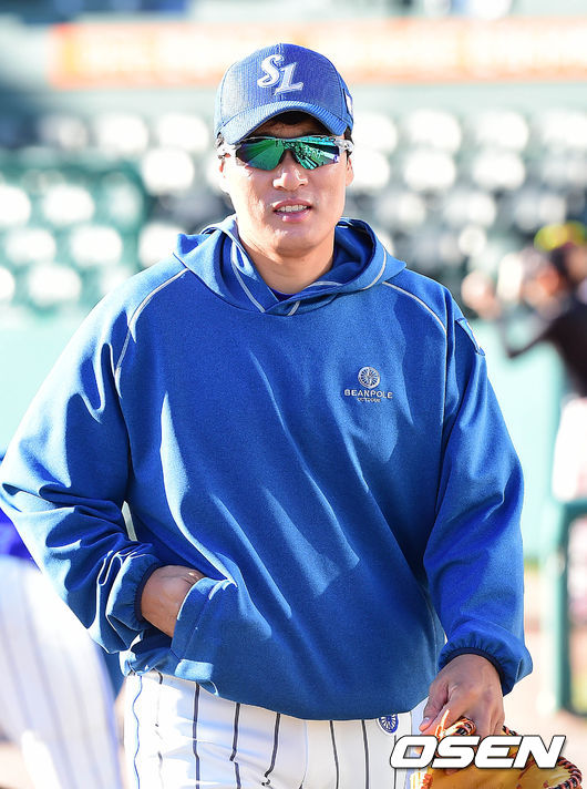 13일 오후 대전구장에서 열리는 '2014 한국야쿠르트 세븐 프로야구' 한화 이글스와 삼성 라이온즈의 경기를 앞두고, 삼성 이승엽이 훈련을 위해 그라운드로 나서고 있다.