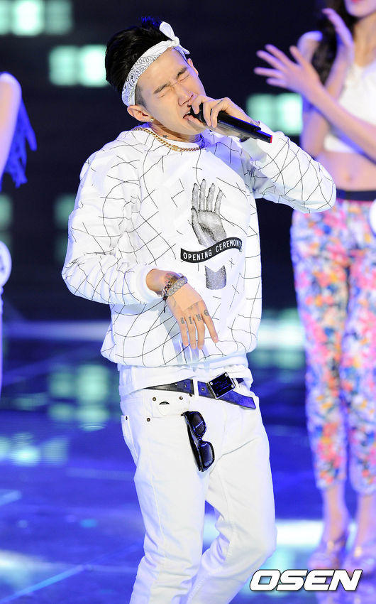 가수 박재범이 축하공연을 하고 있다.