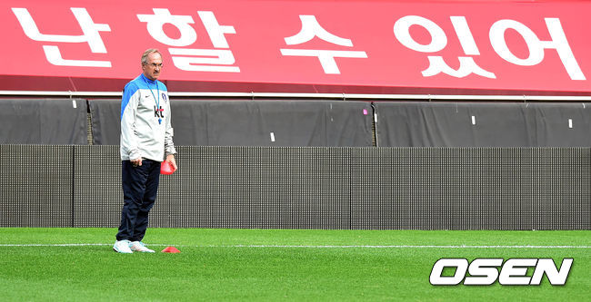슈틸리케 감독이 선수들의 훈련을 지켜보고 있다.