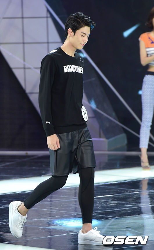 슈퍼모델 웰메이드상을 수상한 참가번호 21번 왕현웅이 워킹하고 있다.