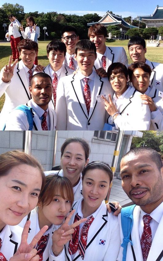 필리핀과의 8강 결선리그서 38점을 몰아넣은 문태종, 이란과의 결승전에서 하메드 하다디를 봉쇄한 김종규, 상무에서 복무 중인 오세근 등 역전의 용사들이 오랜만에 모두 한자리에 모였다. 문태종은 동료들 및 타종목 선수들과 인증샷을 찍으며 기쁨을 만끽했고, 이를 자신의 SNS에 올려 자랑했다.