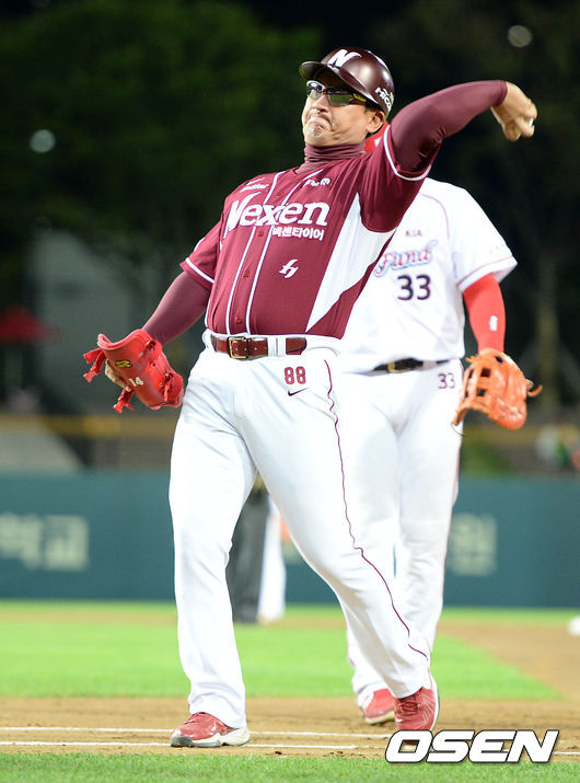 2회초 2사 2루에서 넥센 심재학 코치가 서건창의 197안타 볼을 받아 더그아웃으로 던지고 있다. 서건창은 지난 1994년 해태 이종범(현 한화 코치)가 작성한 한 시즌 최다안타(196개.124경기)를 넘어 신기록을 작성했다. 이종범과 똑같이 124경기만에 196안타를 기록한 서건창은 125경기만에 한국야구사의 신기원을 열었다.