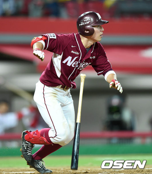 7회초 1사에서 넥센 서건창이 내야땅볼을 치고 있다.