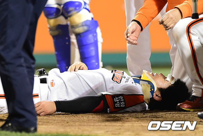 머리를 맞은 장운호는 이날 전까지 올해 38경기 타율 2할7푼4리 17안타 1홈런 7타점을 기록하고 있는 한화의 유망주. 그러나 예기치 못한 헤드샷으로 병원에 실려가고 말았다. 시즌 마지막 홈경기에 일방적으로 지고 있는 한화는 유망주의 부상까지 최악의 경기가 되고 있다.