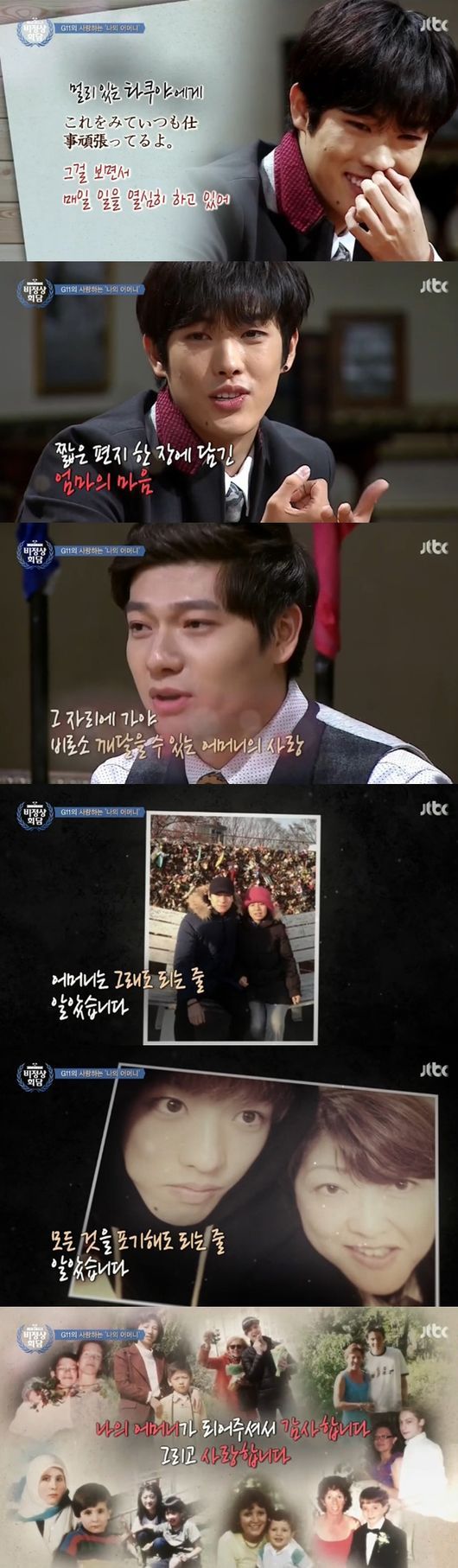 타규야는 “엄마에게 편지가 왔다. ‘휴대전화 고마워. 이걸 보면서 열심히 일하고 있어. 함께 있지 않지만 항상 타쿠야를 생각하고 있어’라는 내용이었다”라고 어머니가 전한 편지 내용을 공개, “그 편지 하나가 감동이었다. 떨어져 있지만 항상 함께라는 생각이 든다. 편지를 보면 눈물이 난다”고 말하며 눈물을 글썽거렸다.