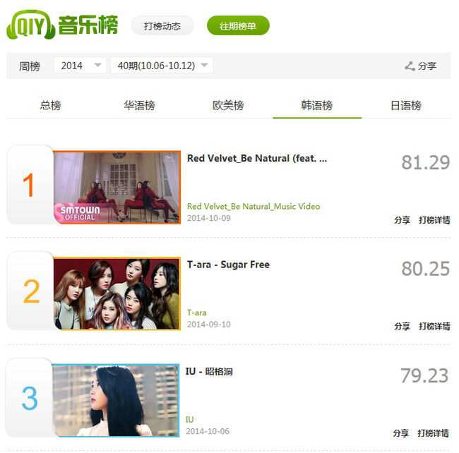 지난 9일 공개된 레드벨벳의 이 뮤직비디오는 중국 온라인 동영상 사이트 아이치이 뮤직비디오 주간차트(10월 6일~10월 12일) 한국어 부문 1위는 물론 중국 음악 사이트 인위에타이 V차트 뮤직비디오 주간차트(10월 6일~10월 12일) 한국어 부문 2위에 올라, 특급 신인 레드벨벳에 대한 현지 팬들의 관심을 실감케 했다.