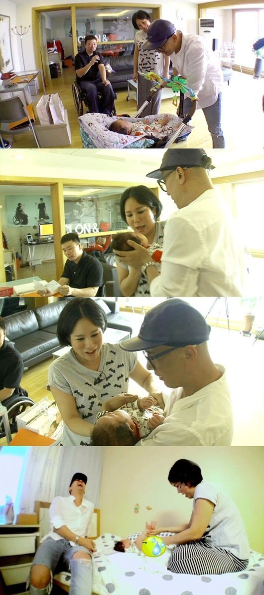 하지만 즐거움도 잠시, 아이를 돌본 적 없는 노총각 구준엽은 선이를 보는 것이 어색해 아이가 품에 안기자 당황함을 감출수가 없었다. 이에 바로 김송에게 아이를 넘겨주며 웃음을 자아냈다.