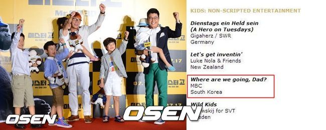 MBC 인기 예능프로그램 '일밤-아빠! 어디가'가 한국 예능 프로그램 최초로 국제에미상 키즈어워즈 후보에 올랐다.