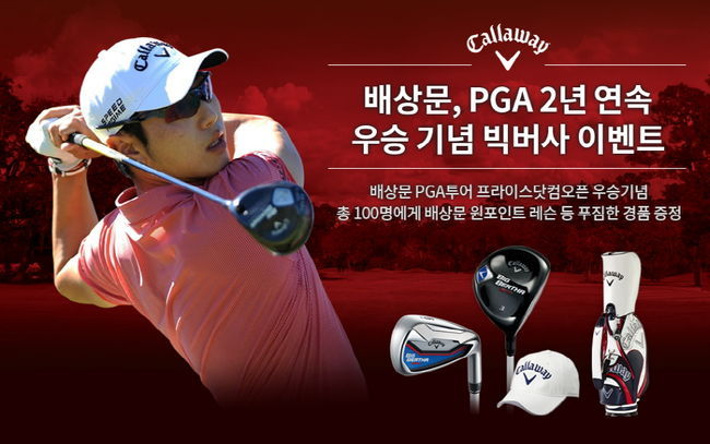골프 전문 브랜드 캘러웨이골프는 배상문 선수의 미국프로골프(PGA)투어 2014-2015시즌 개막전 프라이스닷컴 오픈 우승을 기념해 '배상문 PGA 2년 연속 우승 기념 빅버사 이벤트'를 진행한다고 14일 밝혔다.