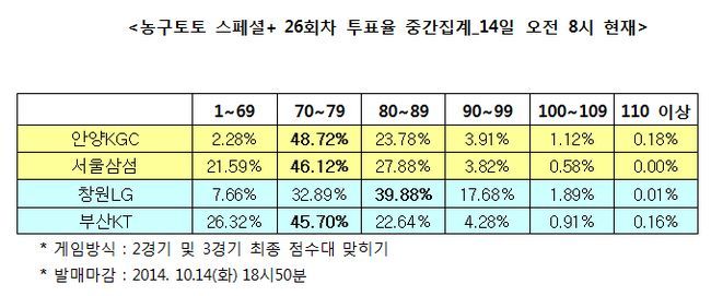 2014-15시즌 KBL 2경기 대상 농구토토 스페셜+ 26회차 투표율 중간집계 결과