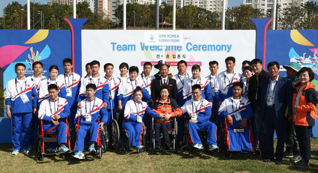 2014 인천장애인아시안게임 'D-4일'인 14일 북한 선수단이 첫 공식 입촌식을 진행했다.