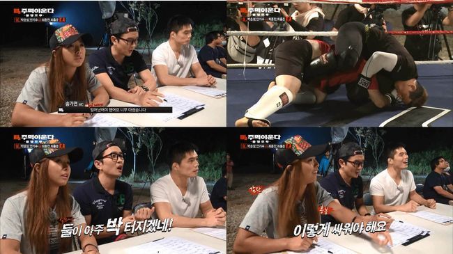 지옥의 전지훈련 첫날 밤에 기습적으로 열린 대결인 만큼, 2대2 태그매치에서는 승부를 예측할 수 없는 혈투가 계속된다. 송가연은 순간적인 역습에 충격패를 당한 도전자를 보며 “아!” 하는 외마디 탄성을 지르는가 하면, 강력한 펀치러시로 상대를 압박하는 도전자에게는 “그래, 저렇게 싸워야 돼요!”라고 외치는 등 한껏 흥분한 어조로 목소리를 높인다. 도전자 모두가 실력발휘를 했으면 하는 바람에 마치 응원하듯 경기를 중계하게 된다는 제작진의 전언이다.