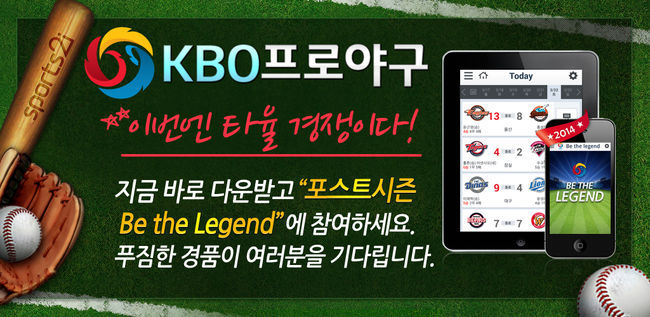 - KBO 공식 APP ‘KBO 프로야구 2014’에서 포스트시즌 Be the Legend 프로모션