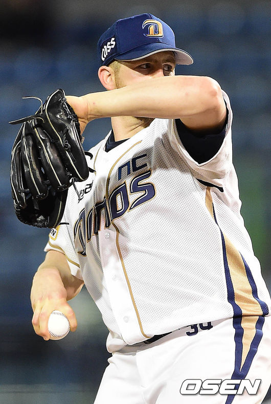 NC 선발 에릭이 힘차게 공을 뿌리고 있다.