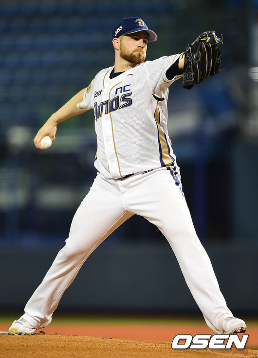 NC 선발 에릭이 힘차게 공을 뿌리고 있다.