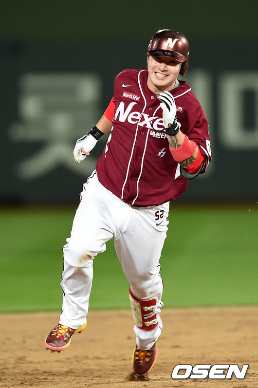 4회초 1사 1,2루에서 넥센 박병호가 우익수를 넘기는 2타점 적시타를 치고 그라운드를 달리고 있다.