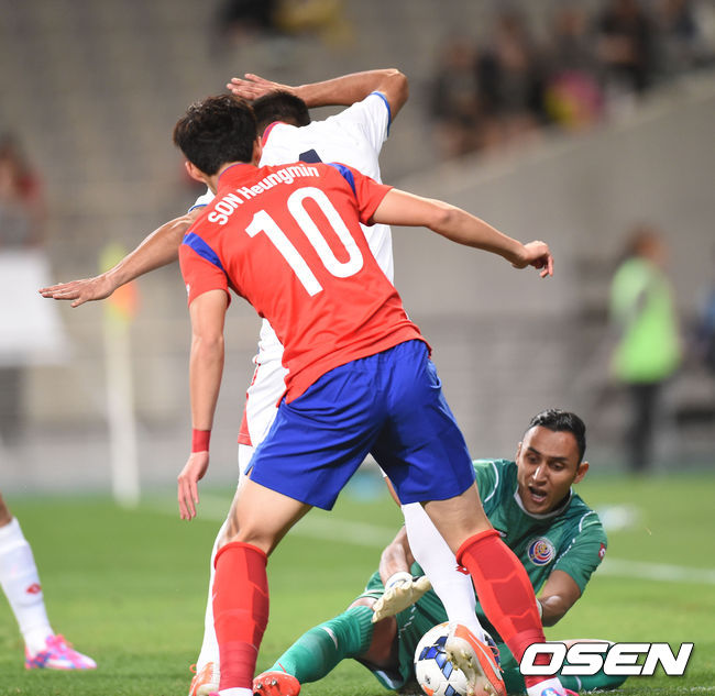 14일 오후 서울월드컵경기장에서 열린 한국과 코스타리카의 평가전,전반 나바스 골키퍼가 수비를 펼치고 있다.