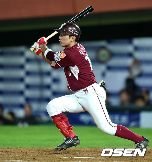 5회초 1사에서 넥센 서건창이 우전 안타를 치고 있다.