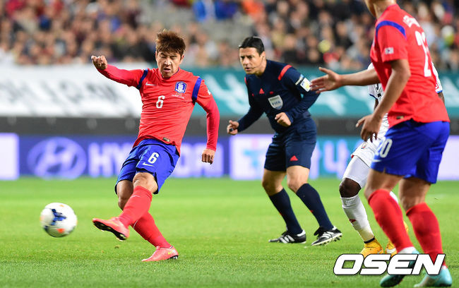 14일 오후 서울월드컵경기장에서 열린 한국과 코스타리카의 평가전 경기 전반 박주호가 슛을 시도하고 있다.