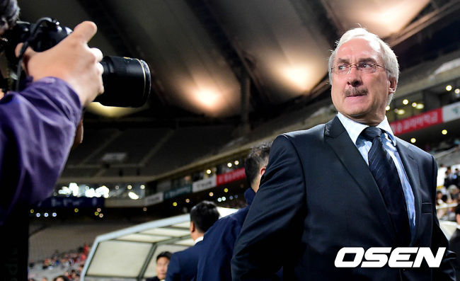 14일 오후 서울월드컵경기장에서 열린 한국과 코스타리카의 평가전 경기 시작전 슈틸리케 감독이 그라운드에 입장하고 있다.