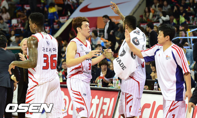 경기종료 후, 승리한 오리온스 선수들이 인사를 나누고 있다. /ouxou@osen.co.kr