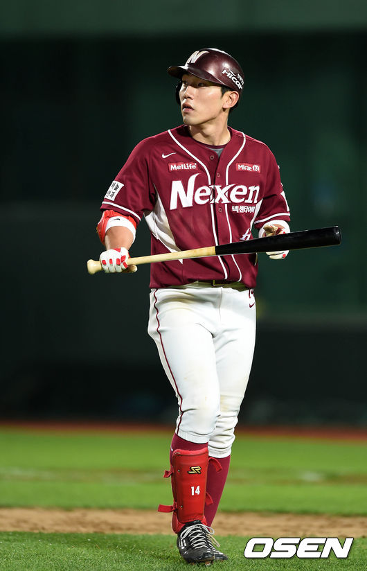 7회초 무사에서 넥센 서건창이 삼진으로 물러나고 있다.