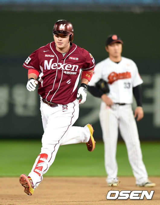 8회초 무사에서 넥센 박병호가 좌월 솔로홈런을 치고 그라운드를 달리고 있다.