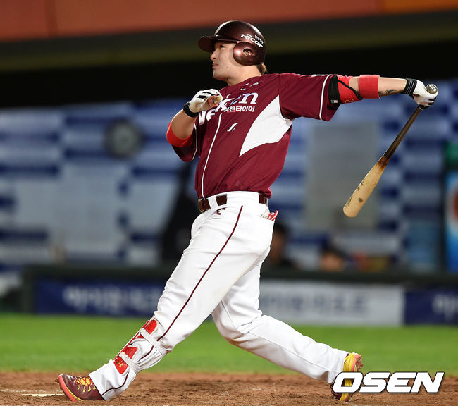 8회초 무사에서 넥센 박병호가 좌월 솔로홈런을 치고 있다.