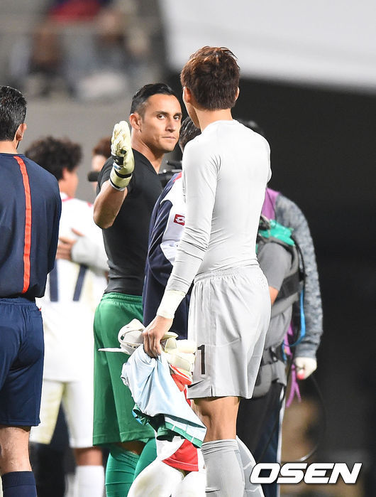 케일러 나바스도 모든 슈팅을 막지는 못했다. 한국은 전반 44분 남태희의 패스를 받은 손흥민이 우측면을 파고 들었다. 손흥민의 크로스는 이동국의 동점골로 연결됐다. 워낙 타이밍이 완벽해 나바스도 손을 쓸 수 없는 골이었다.