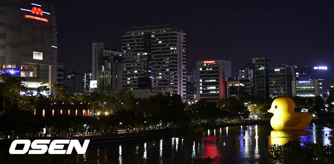 한편 러버덕은 오늘 오후 2시부터 바람이 빠져 즉각 조치 이후 다시 석촌호수에 전시되었다. /greenfield@osen.co.kr