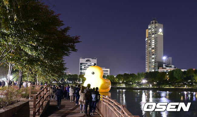 한편 러버덕은 오늘 오후 2시부터 바람이 빠져 즉각 조치 이후 다시 석촌호수에 전시되었다. /greenfield@osen.co.kr