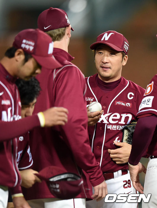 경기 종료 후 넥센 이택근이 밴헤켄의 승리구를 챙겨주고 있다. /sunday@osen.co.kr