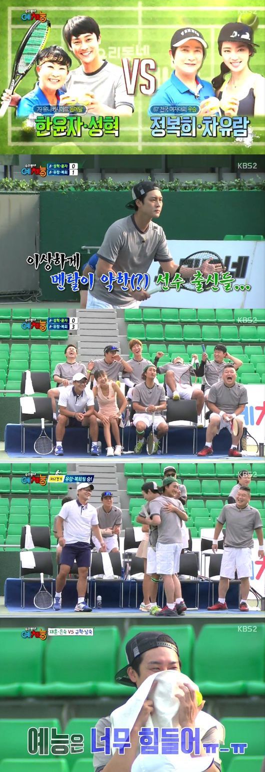 14일 오후 방송된 KBS 2TV '우리동네 예체능'에는 대한민국 여자 테니스 국가대표 OB로 구성된 '마당회'와 '예체능' 테니스팀의 대결이 펼쳐쳤다.